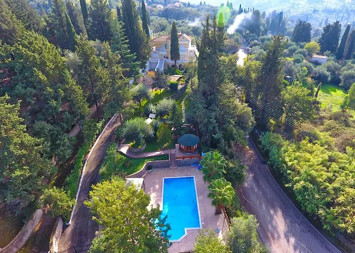 Iubitorii de natură se vor bucura de apropierea de Benitses Beach, situat la 3.3 km distanță. Printre reperele educaționale din apropiere se numără Universitatea Ionio, care se află la 7 km de vila cu 6 băi.